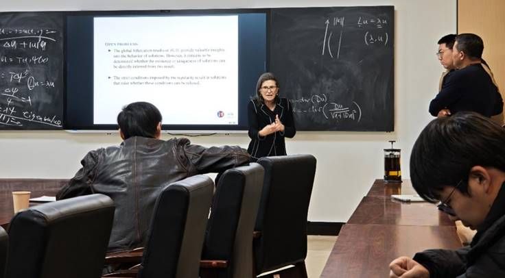 2025年10月14-16日,意大利佩鲁贾大学Patrizia Pucci教授应邀访问我校数学与统计学院,并于15日下午在第一教学楼B座325学院会议室作了一场高水平的学术报告,主题为“A detour on recent bifurcation, regularity and existence results for a series of nonlinear critical Schrödinger-Poisson problems”。学院部分教师及研究生参加了此次学术活动。